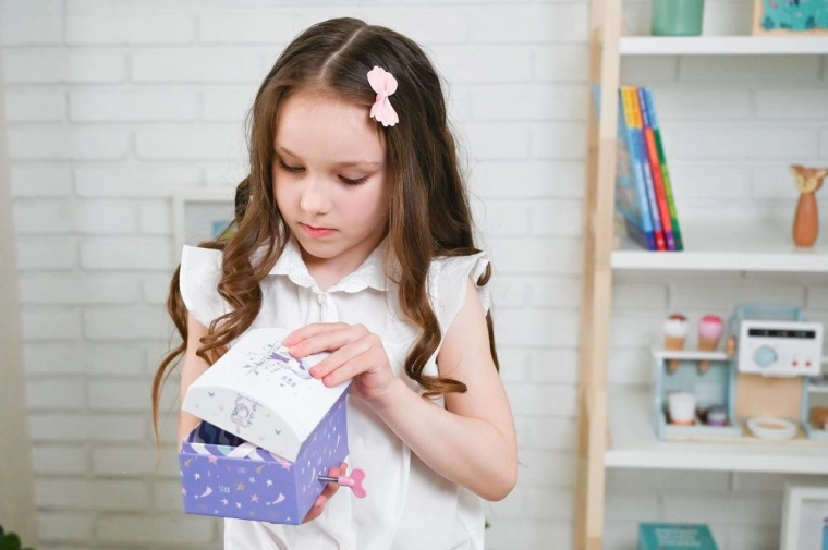 Denne smukke musikboks med temaet "Venner" er den perfekte gave til børn fra 6 år. Pyntet med farverige mønstre og magiske billeder giver den ikke kun opbevaringsplads, men også en melodi, der glæder både øje og øre.