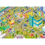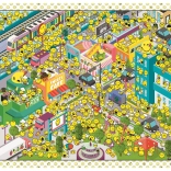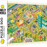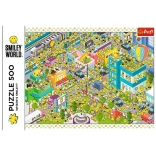 Puslespil Trefl Hvor er Smiley? tilbyder en udfordring i at samle til et farverigt bypanorama.