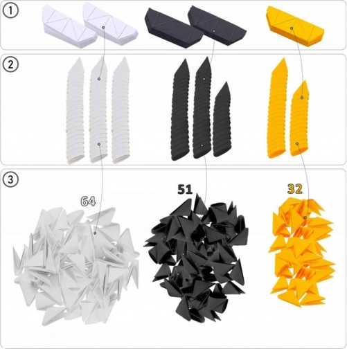 Dette kreative sæt giver børn fra 8 år en sjov og lærerig måde at udvikle tålmodighed, præcision og fantasi på. Alle moduler har en patenteret form med tydelig foldelinje, så du folder grunddelen i tre enkle trin og samler uden lim til en 3D‑figur af en bi.