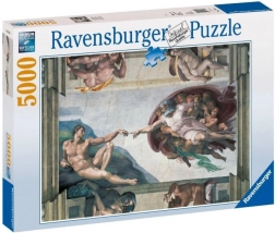 Fordyb dig i renaissancekunstens verden med dette premium Ravensburger puslespil, der viser det ikoniske billede af Gud, der giver liv til Adam med en enkelt berøring. Med sine 5000 stykker giver puslespillet en berigende oplevelse for enhver, der værdsætter præcision og farverigdom ved samling.
