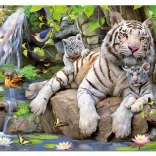 Serien Puslespil Hvide Tigre bringer dig en smuk scene med hvide tigre i en frodig jungle. Dette puslespil med 1000 brikker byder ikke kun på underholdning, men også mental træning. Takket være sin holdbarhed og elegante farver er det en ideel gave!