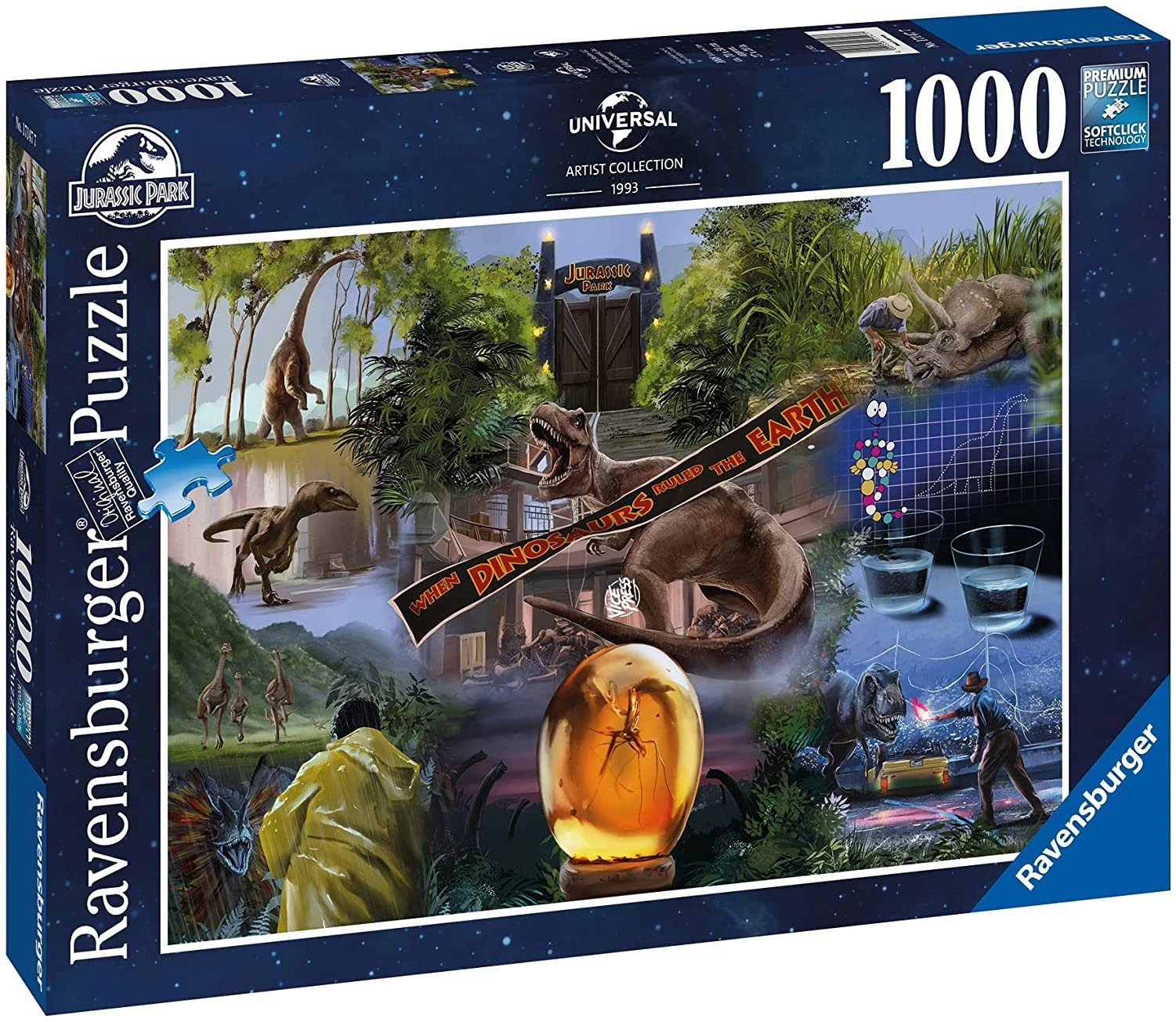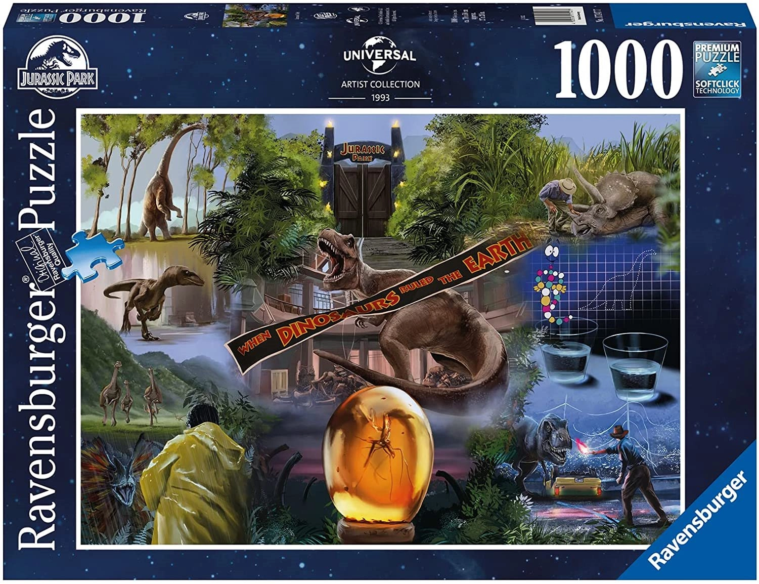 Serien med 1000 brikker fra Ravensburger byder på unikke og interessante mønstre at lægge, i dette tilfælde et puslespil med et motiv fra filmen Jurassic Park.