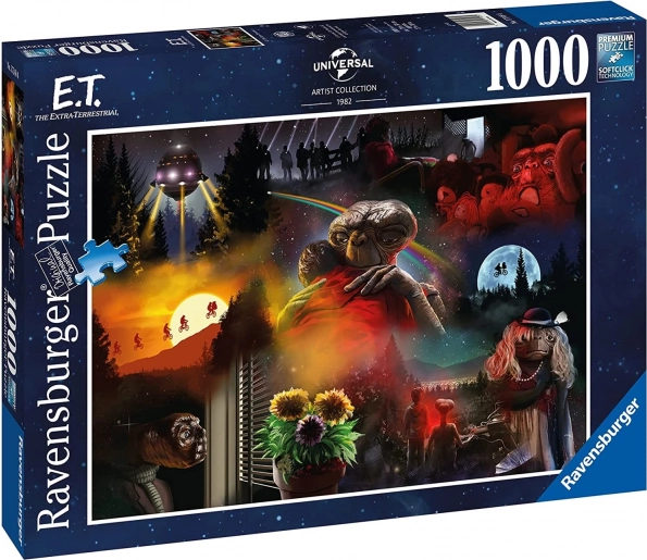 Træd ind i filmklassikernes verden med RAVENSBURGER puslespil 1000 brikker – E.T. Extra-Terrestrial. Takket være SoftClick-teknologi passer brikkerne præcist sammen, og lægningen er jævn og behagelig. Den særlige overflade med struktur af naturligt hør sikrer mættede farver og minimerer reflekser, så det færdige billede bliver maksimalt tydeligt og dekorativt.