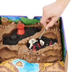 Udforsk forhistorien med den kreative Kinetic Sand-sæt Dinosaurudgravninger! I det omhyggeligt formede bakke med terræn og en “vulkan” venter sort og rød “lava”-sand og skjulte fossiler. Sættet indeholder graveværktøjer, 10 knogler til samling og giver mulighed for at bygge op til tre skeletter – TRICERATOPS, STEGOSAURUS og T-REX. Magisk sand, der aldrig tørrer ud, føles behageligt mellem fingrene, holder formen fantastisk og inviterer til endeløs fantasi og sanselig leg uden rod.