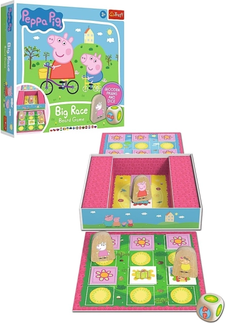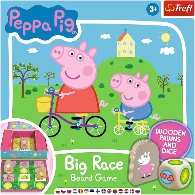 Familiebrætspil Big Race Gurli Gris fra Trefl for 2–3 spillere fra 3 år. Træfigurer og terning, enkle regler og hurtig sjov på 15–20 minutter.