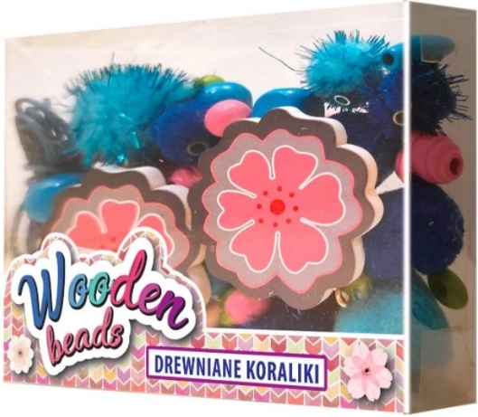 Skab dine egne unikke træsmykker med dette kreative sæt. Det indeholder forskellige slags pynt og tilbehør, som gør det nemt for både børn og voksne at lave armbånd og halskæder. Små blå træperler, farverige pomponer, trævedhæng formet som blomster og vokset snor sikrer sjov og udvikler finmotorikken. Ideelt til børn fra 4 år.
