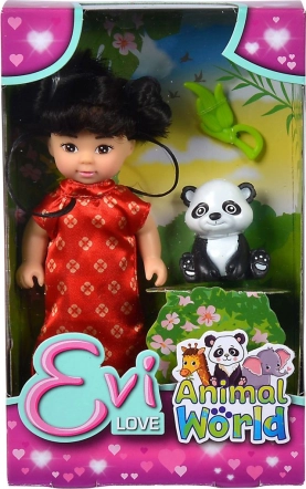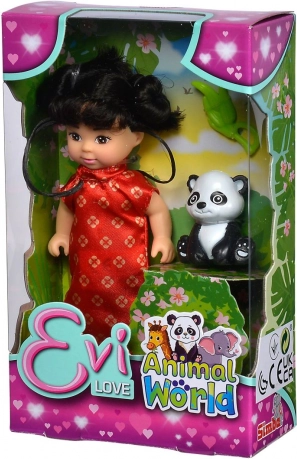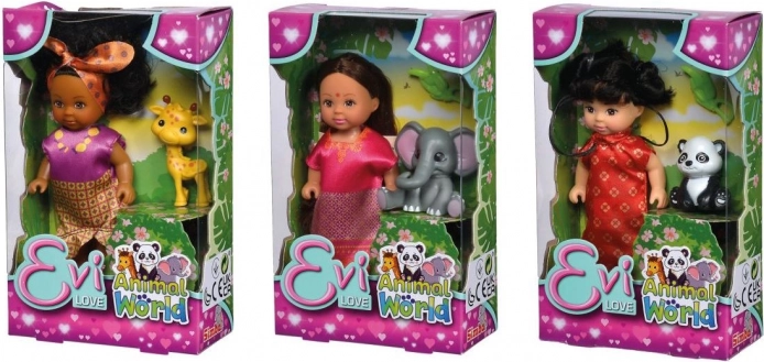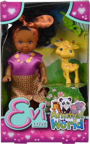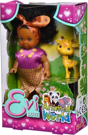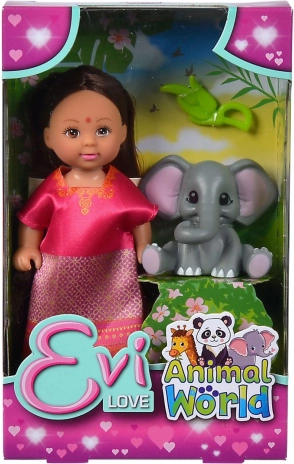 Evi Love-dukken er klar til eventyr med sine små venner fra dyrenes rige. Vælg mellem tre versioner af dette charmerende legetøj: Asiatisk med panda, Afrikansk med giraf eller Indisk med elefant. Hver dukke er unik og giver mulighed for kreativ leg.