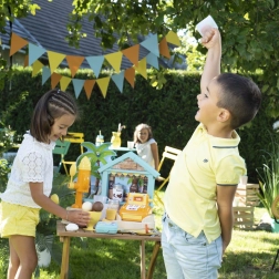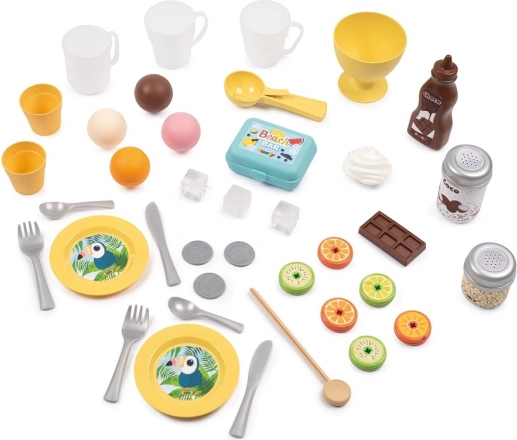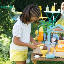 Børn kan blande forfriskende drikke, servere kugleis og pynte med sødt drys. Det realistiske tilbehør forvandler hver leg til en lille sommerfestival af smage.