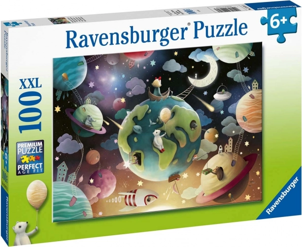 Ravensburger Planet Playground: børnepuslespil med 100 brikker og rumtema. Høj kvalitet, præcise brikker, udvikler logik og finmotorik. Fra 7 år.
