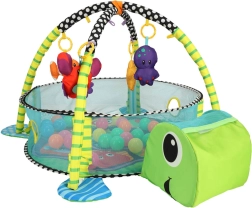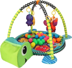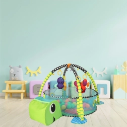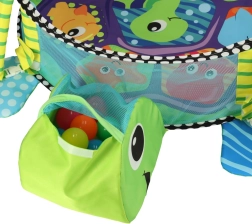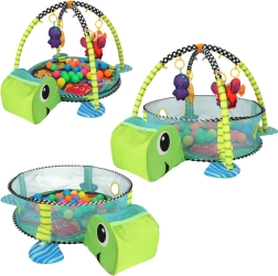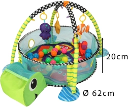 Lærende legetæppe skildpadde med indhegning og bolde er et farverigt, blødt og multifunktionelt tæppe, ideelt til børn helt fra fødslen. Fremstillet af materialer af høj kvalitet, der sikrer barnets sikkerhed og udvikling. Det er ikke kun et legetæppe, men også et boldbassin, som giver masser af glæde og sanseindtryk.