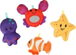 - Legetøj i form af fisk, blæksprutte, stjerne og lille æske med spejl