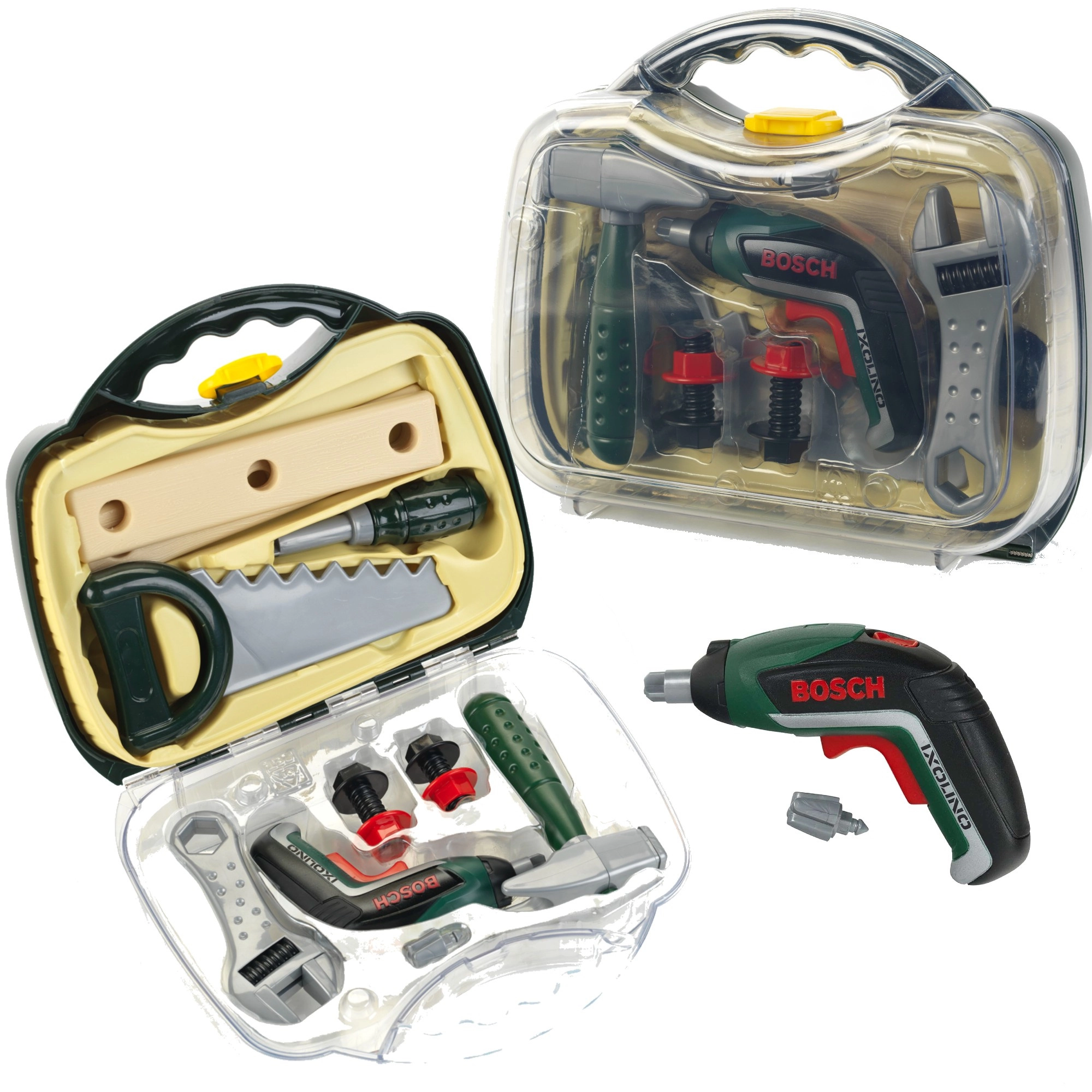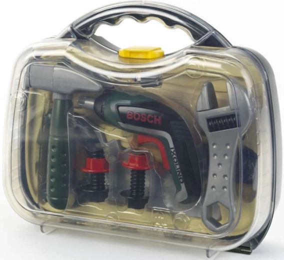 Børnekuffert med værktøj fra den licenserede BOSCH Mini-serie fra mærket KLEIN tilbyder realistisk rolleleg som reparatør. Indeni finder du en akku-skruetrækker Ixolino II på batterier med højre-/venstreløb og motord lyd, suppleret med andre robuste værktøjer. Den solide mørkegrønne kuffert med gennemsigtigt låg og to røde låse holder alt sikkert samlet og er ideel til små gør-det-selv-børn fra 3 år.