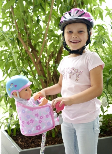 Stilfuldt cykelsæde til dukker NEW BORN BABY med indbygget sikkerhedssele holder dukken trygt på plads. Takket være bløde tekstilvægge, aftagelige velcroremme og holdbar udførelse kan det nemt fastgøres på børnecykel eller løbehjul. Ideelt til dukker 30–43 cm, med et charmerende blomstret design og miljøvenlig emballage.