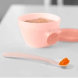Sæt af børneskeer i silikone Easy-Feed – grå og blid koralfarve