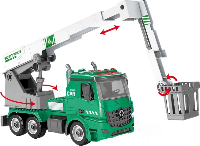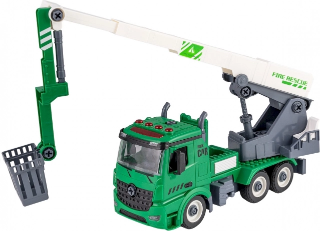 Smart byggesæt og legetøj i ét: grønt bykøretøj med udtrækkelig kurv til redningsaktioner tilbyder mulighed for skruning og gen-samling, realistiske lys- og lydeffekter samt mekanisk friktionsdrev. Kompatibel med populære byggesten for endnu mere kreativ leg.