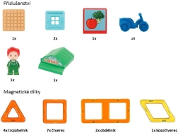 Byggesættet er kompatibelt med andre sæt i Byen-serien. Takket være dem kan du bygge din egen by og kombinere forskellige tematiske sæt som Hospital, Konditori, Bank og Bus. Det er beregnet til børn fra 3 år og omfatter 7 firkanter, 4 trekanter, 2 rektangler, 1 rombe, 7 plasttilbehør og 1 figur. I kombination med andre Magformers-dele og det velkendte byggesystem Geomag giver det endnu flere muligheder for legende kreativitet.