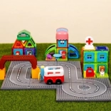 Denne pakke er ideel til kreativ kombination med andre sæt i serien "By". Serien omfatter sæt som Hospital, Markedsplads, Bank og Bus, som frit kan kombineres og dermed udvide byen efter din egen fantasi.