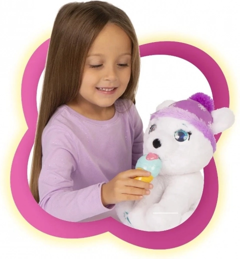Poluś er en interaktiv isbjørn, som er meget sød. Den er lavet af blødt, behageligt plys og har nuttede krystaløjne med glimmer. Den udsender 10 lyde! Efter at have spist isen fra sættet, bliver den dårlig og ryster af kulde. Pas på den og klap den, så vil den straks få det bedre!