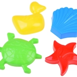 Fire plastforme i form af en and, en musling, en skildpadde og en stjerne gør det nemt og sjovt at forme det dynamiske sand.
