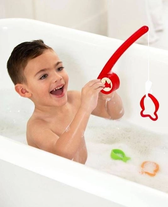 Lad os fiske i badekarret! Med Skip Hop fiskesættet får dit barn sit første fiskeeventyr. Den lille, praktiske fiskestang hjælper dit barn med at fange 3 fisk i forskellige størrelser og støtter dermed udviklingen af den motoriske koordination. Fiskene flyder på vandet, og fiskestangen afgiver en realistisk hjul-lyd.