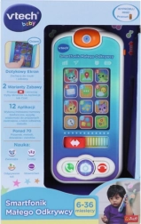 Den interaktive børnesmartphone Den Lille Opdager understøtter børns naturlige nysgerrighed. De efterlignede apps lader dem “ringe” til venlige dyr, se “vejrudsigten” og afspille muntre melodier. Touchskærmen gør det nemt at lære de første ord, tal og former på en sjov måde.