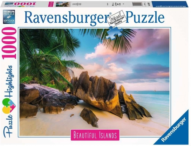 Oplev tropernes magi med puslespillet Ravensburger 1000 brikker med motiv af Seychellerne. Præcist fremstillede brikker for perfekt pasform, smukke farver og afslappende samling for børn fra 12 år og voksne.