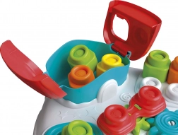 Bordet tilbyder et bredt udvalg af aktiviteter til at udvikle børns motoriske færdigheder, som gear, klods-katapult og poppe-bobler.