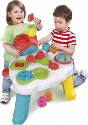 Alle dele af bordet er lavet af giftfri og robuste materialer, der er sikre for små børn. Klodserne er bløde og kan vaskes.