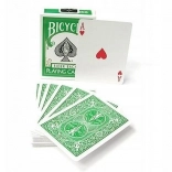 Den grønne udgave af de ikoniske BICYCLE-spillekort i pokerstørrelse tilbyder førsteklasses kvalitet til både tryllekunstnere og spillere. Takket være Air‑Cushion Finish er kortene nemme at blande, glider jævnt og holder længere. Den grønne bagside og æske egner sig til farveskift såvel som almindeligt spil; dækket indeholder desuden 1 joker og 3 gaff-kort.