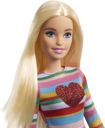 Regnbuestriber og et glitrende hjerte på toppen giver dukken det ikoniske “Malibu”-look til daglig modeinspiration.
