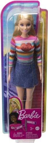 Barbie “Malibu”-dukken bringer børns yndlingsøjeblikke fra serien Barbie It Takes Two til live og inspirerer til nye historier. Med den farverige top med et glitrende hjerte, denimnederdel med gul stikning og komfortable sneakers er hun klar til ethvert eventyr.