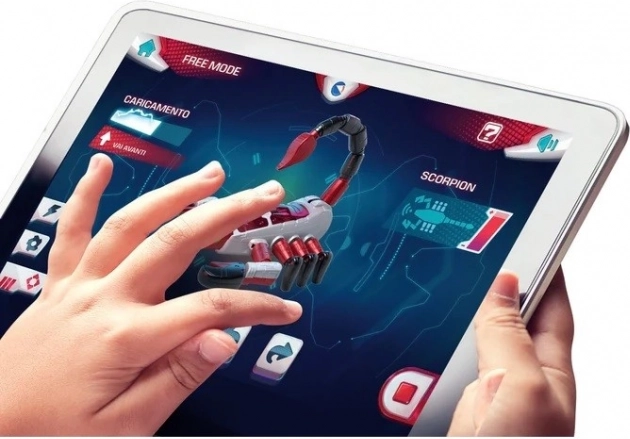 - Mange dele, gear og motorer gør skorpionrobotten til en unik bygge-robot. Fjernbetjening er mulig takket være højfrekvente kommandoer og en specialapp.