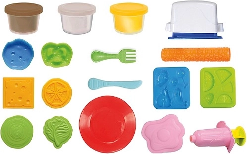 Dette kreative sæt med modelérmasse forvandler spisetid til leg. Børn kan lege kok og af den bløde modelérmasse lave toasts, osteskiver, grøntsager og andre “lækkerier”. Med de let anvendelige værktøjer er formningen hurtig og sjov.
