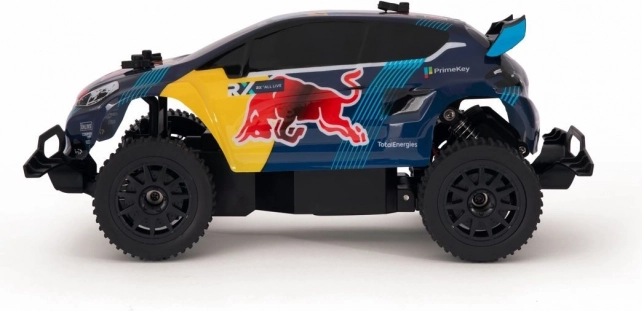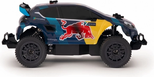 Oplev rallycross-adrenalin med det ikoniske RED BULL-design. Modellen er ca. 26,5 cm lang, stabil, robust og takket være de store dæk klarer den sig også uden for asfalt. Hurtige reaktioner og præcis styring understreges af den ergonomiske controller med 2,4 GHz-forbindelse for pålidelig rækkevidde uden forstyrrelser.