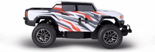 Takket være 2,4 GHz teknologi kan du køre uden forstyrrelser sammen med flere modeller. Bilen leveres som RTR – i pakken finder du bil, sender, akkumulator og USB-oplader. Pak ud og kør. Den lette kvalitetskarrosseri med det markante GMC HUMMER EV-design giver modellen et autentisk udseende og god holdbarhed.