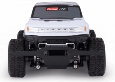 RC-bilen Carrera GMC Hummer EV er designet til dynamisk kørsel i terræn og på fast underlag. Det høje chassis, de store offroad-dæk og effektiv dæmpning gør det let at udjævne ujævnheder. Præcis proportional styring giver fremragende kontrol over både retning og hastighed, så både begyndere og øvede får en god oplevelse.