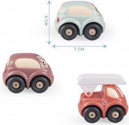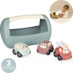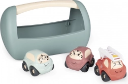 Opdag et legesæt til de mindste: tre robuste minibiler i en praktisk æske med hank. Sættet indeholder 2 bybiler med dyreansigter og en brandbil med stige. Takket være de afrundede former og det lette greb udvikles finmotorikken, og der er sikker leg fra 12 måneder.