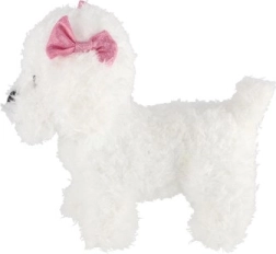 Denne bløde plyshund vil glæde hvert barn med sit venlige udtryk og luftige pels. Takket være den kompakte størrelse på 21 cm er den nem at tage med, så den kan gøre selskab derhjemme, i barnevognen og på farten. De bløde materialer er behagelige at røre ved og giver en tryg følelse ved sengetid.