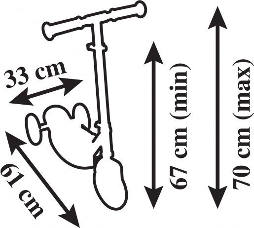 - Tilpasning til barnet: højdejusterbart styr (ca. 67–70 cm).