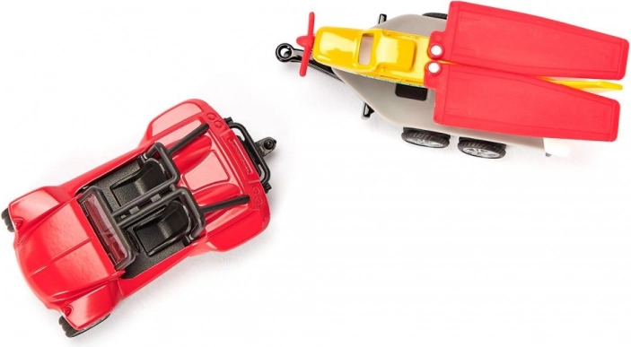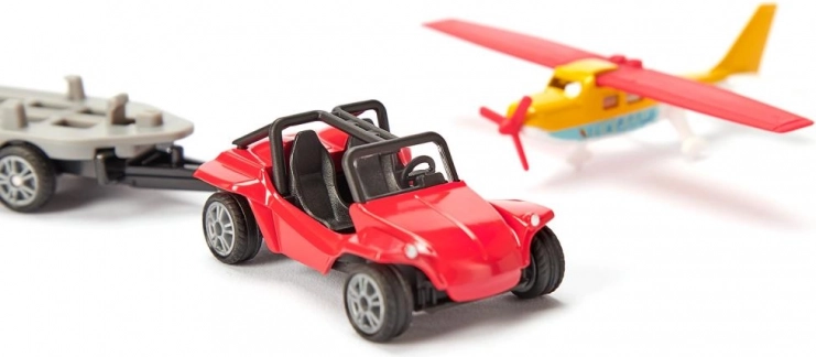 Dette sæt er ideelt til unge piloter og bilentusiaster. Den røde bil med metalkarosseri og sporty gummidæk bringer realistiske detaljer, der understøtter kreativ leg. Flyet har sammenklappelige vinger og livlige farver, der stimulerer fantasien.