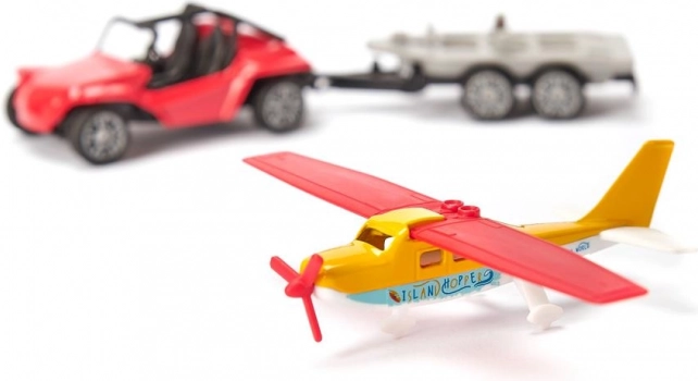 Pakken indeholder en sølvfarvet anhænger med en specialholder til fly, hvilket gør transporten nem og sikker. Hver detalje er omhyggeligt designet for maksimal sjov og eventyr.