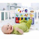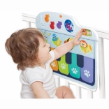 Pianoklaveret til tremmesengens ramme er designet til at være sikkert og blødt og udsender behagelige lyde, der fanger barnets opmærksomhed. Barnet kan lege i sengen både siddende og liggende ved blot at trykke på de farvede noder med fødderne. Legetøjet tilbyder tre legetilstande, hvor man kan vælge mellem klavertone og tre andre instrumenter: guitar, harpe eller trompet.