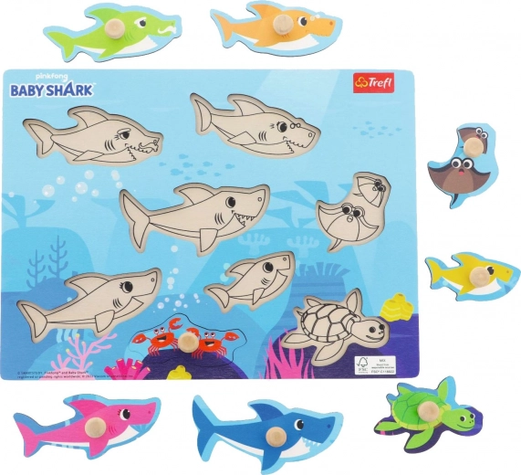 Det træbaserede puslespil med de populære figurer fra BABY SHARK er det perfekte valg til dit barns første puslespil. Farverig grafik på kvalitets træ og praktiske træknopper gør det nemt at gribe og håndtere selv for de mindste.