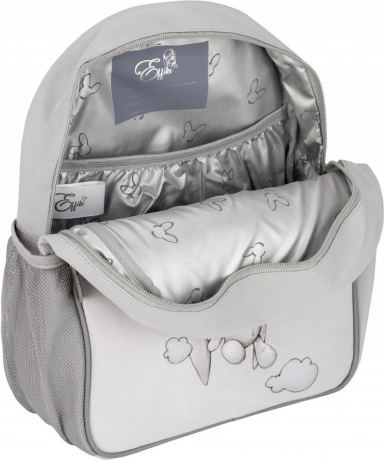 Hovedrummet med bred lynlås gør det nemt at pakke og pakke ud. Der er også en indvendig lomme til madkasse eller beholder, navnemærke og to sidelommer (den ene i mesh) til vandflasken. Det slidstærke vandafvisende materiale i polyester beskytter indholdet ved daglig brug.