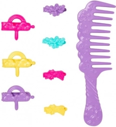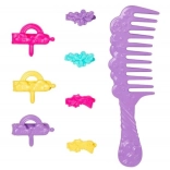 Farvede clips, hårspænder og en bred kam gør det nemt at rede ud og sikre nye frisurer uden at hive.