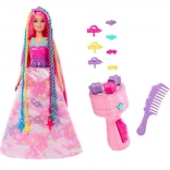 Barbie-dukken fra eventyrriget Dreamtopia har ekstra langt hår med regnbuestriber, der indbyder til styling. Sæt blot 2–3 lokker i fletteværktøjet og skab fortryllende snoede frisurer med ét tryk. Tre regnbueclips holder frisuren på plads, mens farvede hårspænder fuldender det endelige look.