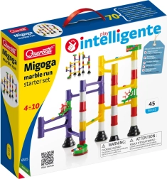 Migoga-startsættet tilbyder et farverigt byggesæt med solide baser, søjler og farvede baner, der let klikkes sammen. Takket være opsamlingskurve, spiraler, broer, møller og fjedermagasiner skaber du jævne og dynamiske ruter, hvor kuglerne suser fra et niveau til det næste.