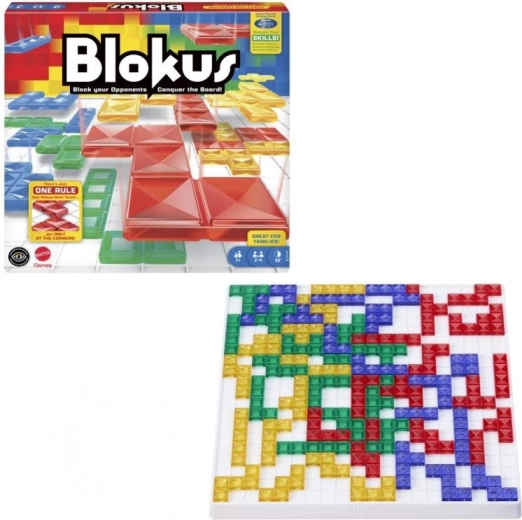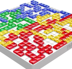 BLOKUS er et hurtigt abstrakt strategispil for 2–4 spillere, hvor I på skift lægger 21 polyominoer i jeres farver på et solidt kvadratisk gitter. Hver ny brik skal røre mindst én af dine egne brikker kun i et hjørne – aldrig langs en kant. Denne enkle betingelse skaber en dyb taktisk udfordring og spændende kamp om pladsen.