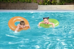 Svømmeringen Bestway i levende grøn farve er en ideel hjælper til svømmeundervisning og giver samtidig masser af sjov i vandet. Lavet af kvalitets PVC-materiale, der er modstandsdygtigt over for havvand. Sikkerhedsventil forhindrer utilsigtet luftudslip.