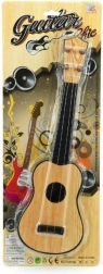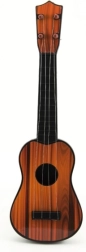 Instrumentet efterligner realistisk udseendet af en træ-guitar i to stilfulde varianter – lyst og mørkt træ. Ideel til hjemmebrug, børnehaver samt som gave til små begyndere.